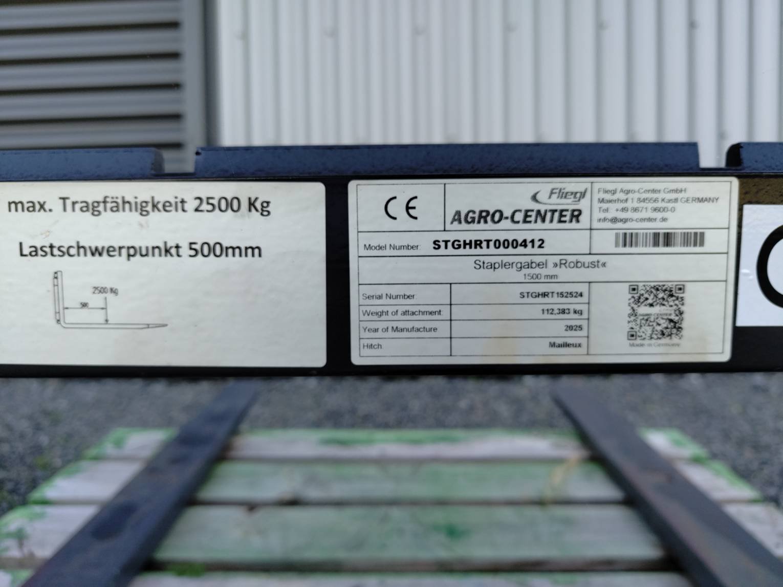 Accrochage MX, Capacité 2.5t, Attelage pour fourche à palette FEM 2A (hauteur 410 mm), Largeur de tablier 1500mm, Glissière fraisée en une seule pièce, fourches 100x40mm longueur 1200mm