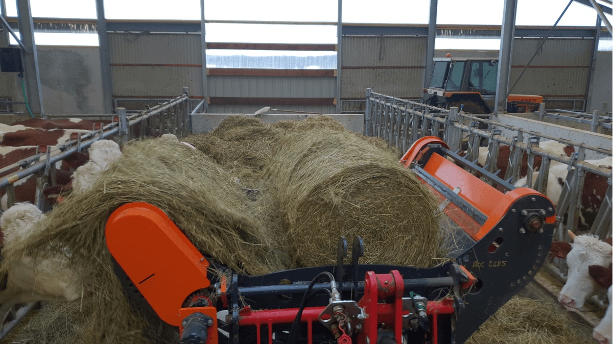 Une gamme de dérouleuses de bottes rondes telles que foin, regain, paille, luzerne… compactes et polyvalentes. Déroulage à droite ou à gauche à l’avant ou à l’arrière. Possibilité de changer de sens de déroulement pour aider les noyaux de bottes collés ou les cœurs tendres légers à se défaire, berce profonde. Système pique et déroule qui évite de descendre pour accoupler l’hydraulique du pique entre chaque botte. Pour des bottes jusqu’à Ø 2,3 m (le modèle 260 XL est parfait pour les bottes de plus Ø1,6m jusqu’à 1 400 Kg). Ces dérouleuses existent en 2 largeurs : 2,08 m ou 2,6 m. Peut être portée par valet de ferme, petit tracteur, télescopique, tracteur selon modèle.