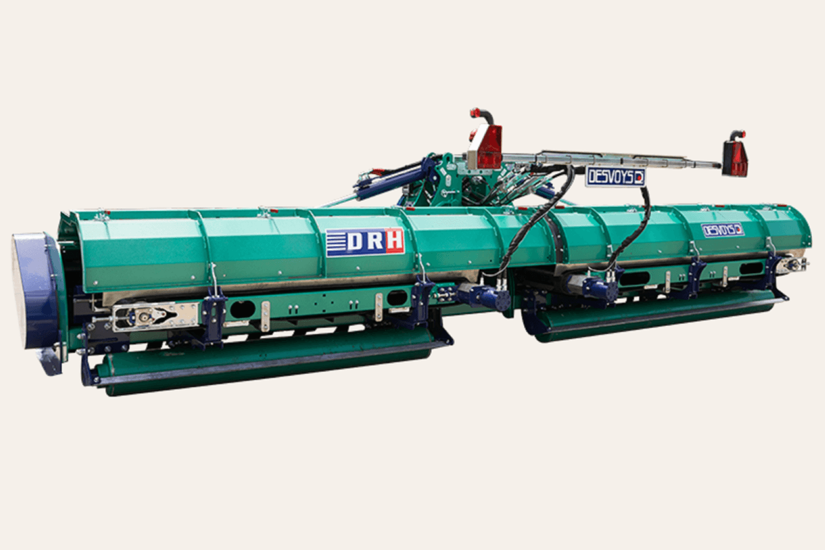 La gamme de broyeurs avec un dispositif de tapis d’andainage qui s’adapte sur broyeurs DR4, DRH CULTURE et DRH CULTURE COMBINE. Broient et rassemblent ces andains déposés à droite ou recentrés sur la largeur de travail pour rassembler de grosses étendues de matières de 3,20 m jusqu’à 8,40 m en fonction des modèles de broyeurs. Entrainement hydraulique, bandes transporteuses à taquets robustes, tapis à démontable rapide pour reprendre un emploi ordinaire. Suivi au sol rouleau arrière.
