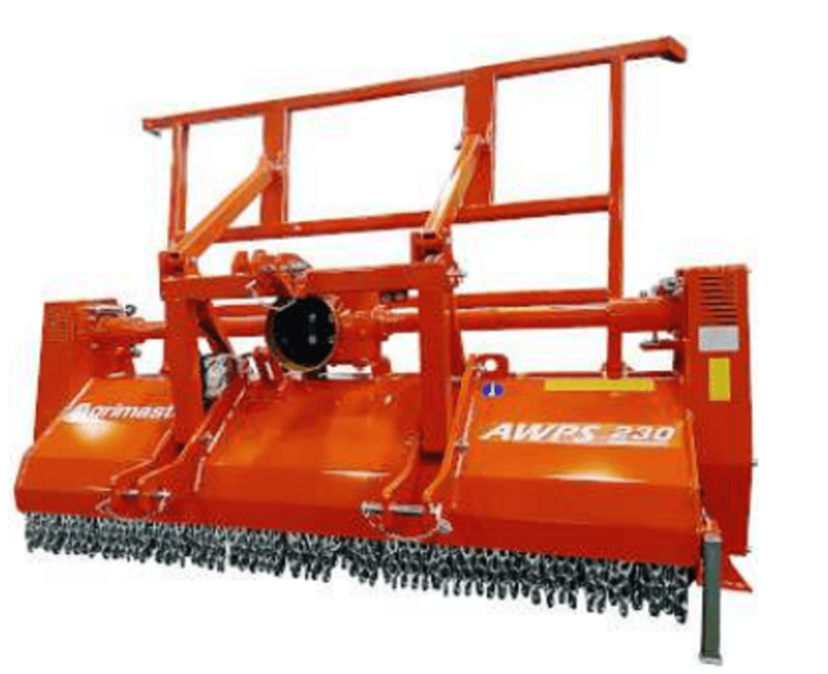 - 3 - Broyeur forestier série AWP pour broyer les troncs et les souches jusqu’à 25 cm et pour la préparation des surfaces pour le reboisement ainsi que pour détruire les sarments. Boitier roues libre dans le 2 sens, attelage 3 points, abatteur de ramage, capot ouvrant par vérin hydraulique. Largeurs de 1,6 à 2,71 m, puissance minimale du tracteur 90 à 150 cv, poids de 1 200 à 1 900 Kg.