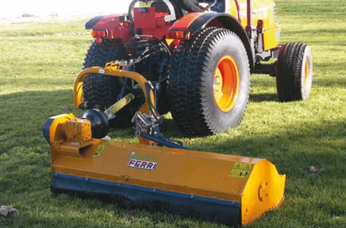 1 - Les broyeurs d’accotements ZMG avec boitier interne et les ZMGE avec boitier externe de la gamme Espaces Verts de chez Ferri, sont idéals pour l’entretien des bordures de parcelles, des fossés, des zones enherbées, broussailles, sarments, bois jusqu’à 4 cm. Rotor hélicoïdal à 6 rangées. Châssis oscillant qui permet de suivre les dénivelés du terrain. Inclinaison tète de broyage -48° / 90°. Puissance tracteur nécessaire 40 à 70 cv. Ces broyeurs peuvent être équipés d’un rotor à marteaux ou d’un rotor à couteaux polyvalents.