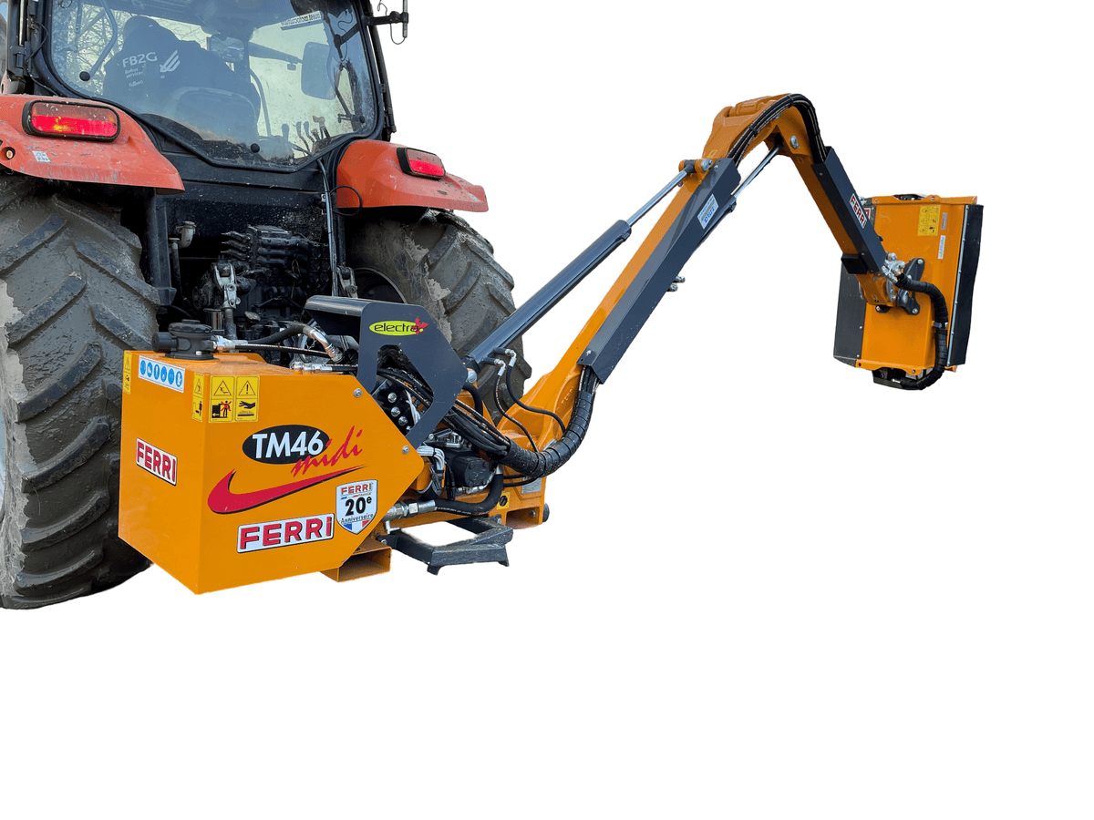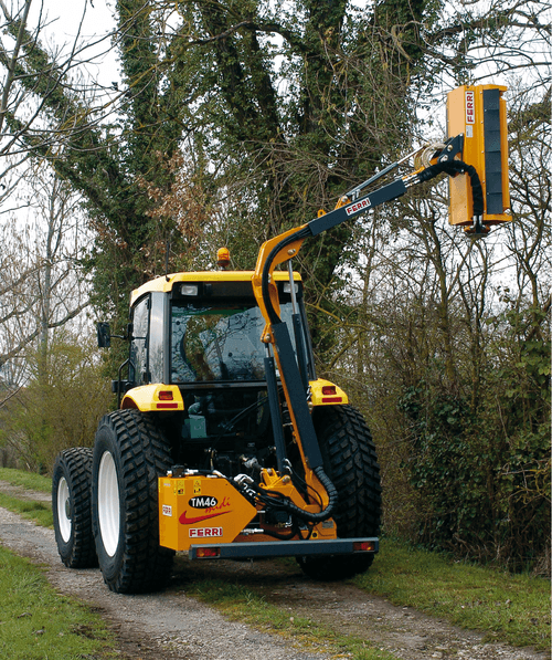Bras 4,56 m, groupe 1 m, moteur hydraulique 45 CV, tête flottante. Couteaux polyvalents, commandes électriques. Suspension oléopneumatique.