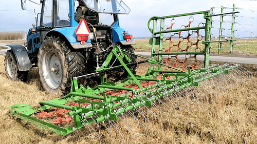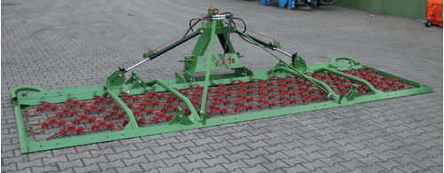 Une gamme composée de 4 modèles de herses de prairie à chainons avec 1 ou 2 vérins. Herse de prairie 1 vérin tapis fermé à 4 ou 5 rangées : Attelage 3 points cat. II. Repliage mécanique ou hydraulique à 1 vérin double effet sur modèles 6 m et 8 m. Blocage mécanique de vérin pour le transport. Fixation de tapis au cadre à laide de manilles. Largeur de travail de 3 m à 8 m, poids de 260 à 740 kg. Modèles : 1100-1106-1108-1116-1118-1124-1134 (modèles 4 rangées). 1099-1105-1117-1123-1133 (modèles 5 rangées). Herse de prairie 2 vérins tapis fermé : Attelage 3 points cat. II. 4 rangées d'éléments de travail lourds. Repliage hydraulique à 2 vérins double effet. Blocage mécanique de vérin pour le transport. Fixation de tapis au cadre à l'aide de manilles. Largeur de travail de 4 m à 8 m, poids de 400 à 840 kg. Modèles : 0807-0815-0819-0820. Herse de prairie 2 vérins tapis traîné : Attelage 3 points cat. II. 4 rangées d'éléments de travail lourds. Repliage mécanique ou hydraulique à 2 vérins double. Blocage mécanique de vérin pour le transport. Fixation de tapis au cadre à l'aide de manilles. Largeur de travail de 4 à 6 m, poids de 380 à 625 kg. Modèles : 1146-1148-1156-1160. Herse de prairie MINI : Attelage 3 points cat. I ou II N. 3 rangées d'éléments de travail lourds. Fixation de tapis au cadre à l'aide de crochets. Largeur de travail 1,5 m à 2,6 m, poids de 80 à 120 kg. Modèles : 1053-1054-1055-1056-1057.