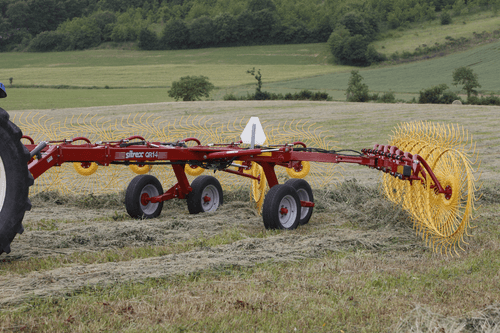 Les andaineurs traînés à 2 rotors sont robustes et efficaces et assurent des andains réguliers, homogènes...