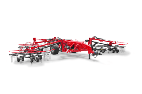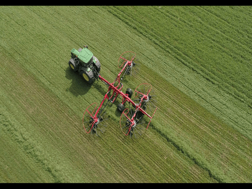 Cet andaineur rotatif à 4 rotors a une largeur de travail de 12,50 m pour un andainage professionnel élevé.