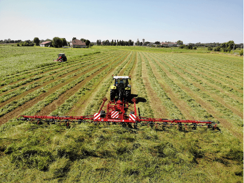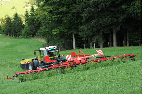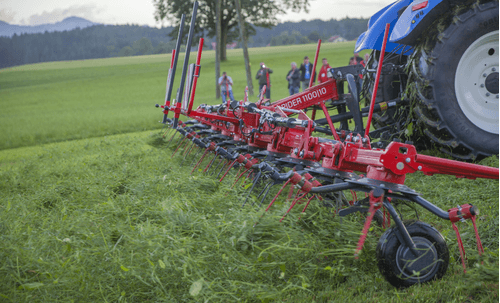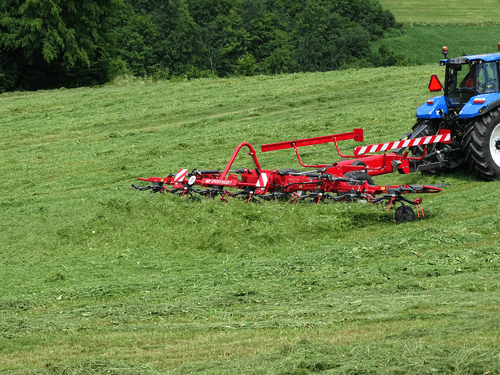 Gamme de faneuses rotatives professionnelles semi-portées de 8 à 14 rotors robustes (8.80m à 14.80m de travail) pour de grandes surfaces avec des fourrages denses. Technologie permettant une utilisation simple, fourrage uniformément réparti sans contamination par la terre ou le sable. Angle de fanage réglable facilement pour un travail aisé et rapide.