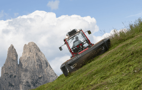 Cette gamme de faucheuses frontales ALPINES est conçue pour des terrains abrupts et des zones montagneuses, escarpées. Elles sont agiles, robustes et légères avec un centre de gravité proche du tracteur pour plus de sécurité dans des pentes. Elles permettent une coupe régulière et propre sur les terrains les plus ardus. Une barre de coupe soudée avec des disques en acier de 4 mm dont la forme spéciale permet un flux rapide et efficace. Attelage frontal 3 points, nombre de disques 5, 6 ou 7 selon le modèle. Rotation des disques vers le centre pour andains plus étroits sur terrains abrupts. Rideau de protection pliable contre les débris volants. Lames de rechange et goupilles de sécurité en laiton…Large équipements de série.