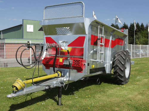 Epandeurs de fumier monocoque série AG surbaissé à 2 vis verticales. Caisse à côtés évasés de forte épaisseur (4 mm et 8 mm au passage des chaînes), hérissons x 1900 mm : 2 vis sans fin verticales, épaisseur 10 mm, inclinées avec couteaux HARDOX boulonnés réversibles ø vis 875 mm (sauf ag8), frein pneumatique, avance du tapis hydraulique avec régulateur de débit sur support (double effet tracteur), entraînement des boîtiers par transmission 540 trs et 1000 trs/min (cardan), cric hydraulique, axe arrière ø 55 mm, éclairage conforme au code de la route, largeur d’épandage : jusqu’à 9 m (selon produit), échelons d’accès extérieur, flèche ressort – anneau fixe, tapis 2 chaînes marines : 14 mm pour AG8 – AG10 – AG12 16 mm pour AG15, transmission avec sécurité à boulon et roues libres. Grand choix d’options pour chaque utilisateur.