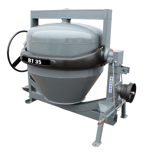 Bétonnière agricole 3 points, châssis renforcé, étrier droit, cuve soudée en 3 composants, 3 doubles pâles de malaxage, couronne fonte avec protection intégrale composite, démultiplication fonte, support de cardan intégré, malaxage de 2 ou 3 sacs de 35 Kg selon le modèle choisi. Livrée sans cardan.