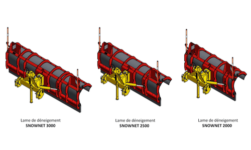 La gamme de lames de déneigement SNOWNET est composée de 3 modèles de 2 m, 2,50 m et 3 m et permet de travailler jusqu'à 40 km/h. Son profil galbé en PEHD évacue la neige plus facilement.