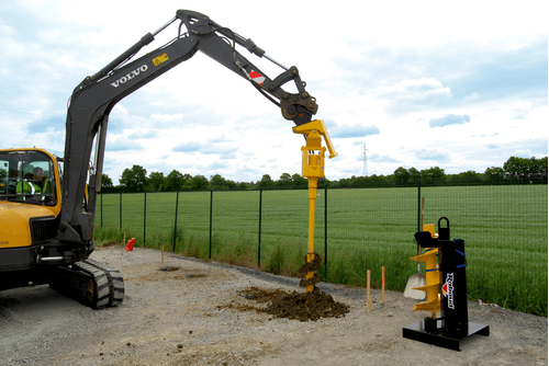 La tarière TRH pour pelle s'adapte sur tout engin hydraulique inférieur à 15 tonnes (mini-pelle, tracto pelle ou pelle).