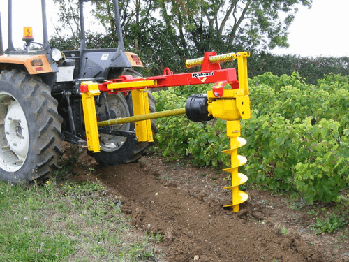 3-Pour une utilisation viti, les tarières MINI-JUNIOR et JUNIOR déportables, s’adaptent à des tracteurs de 15 à 60 cv. Elles s’utilisent pour la création et la rénovation des vignes.