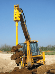 La tarière TRH pour pelle s'adapte sur tout engin hydraulique inférieur à 15 tonnes (mini-pelle, tracto pelle ou pelle).