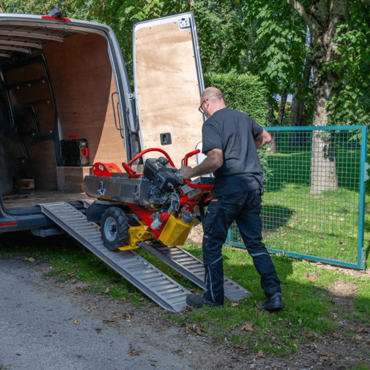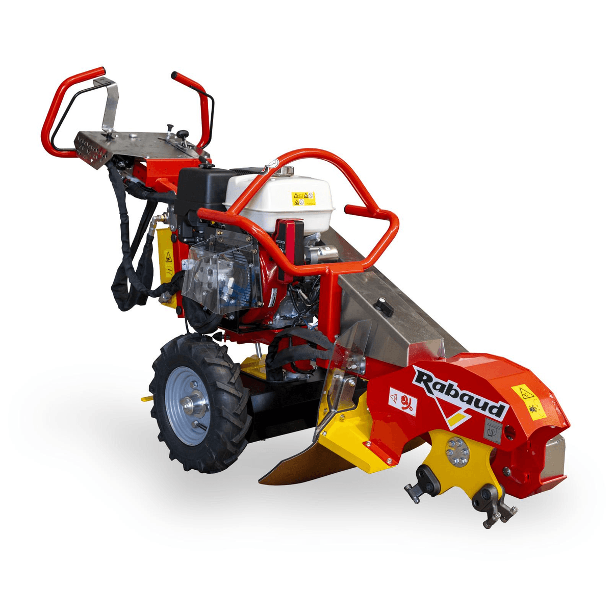 Rogneuses sur roues, cette gamme composée de 2 modèles thermique compacts et d’une largeur de 0,70 m montés sur pivot pour faire un balayage droite/gauche avec une envergure de 0,85 m. Rotor équipé de 8 dents taille 7 repositionnable 3 fois pour plus de durée. Transmission par 2 courroies trapézoïdales. Motorisation essence HONDA : 6,1 litres ou BRIGGS & STRATTON : 5,7 litres. Embrayage centrifuge sur modèle XYLOGROK 39 DM et électromagnétique avec frein intégré sur modèle XILOCROK 39 DA.