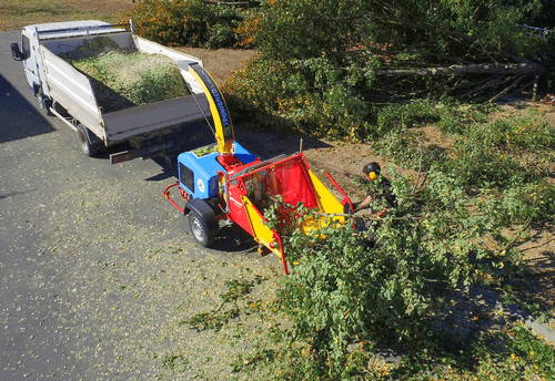Broyeur de branches électrique fonctionnant sur batteries lithium-ion 48 v avec une autonomie de 5 heures. Rechargeable sur prise domestique 220 v ou sur une borne de voiture électrique. Puissance : 13 Kw.