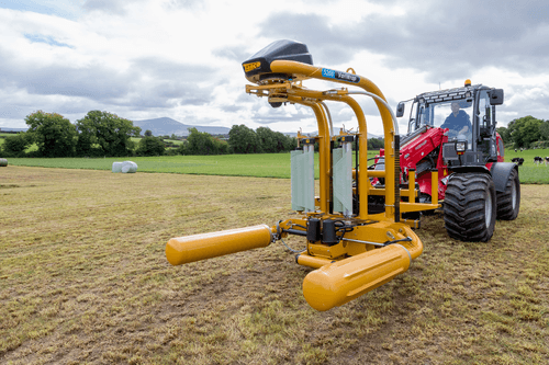 Enrubanneuse à balles rondes portée à satellites