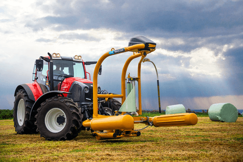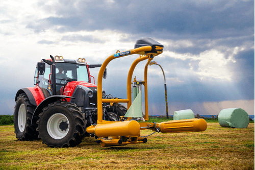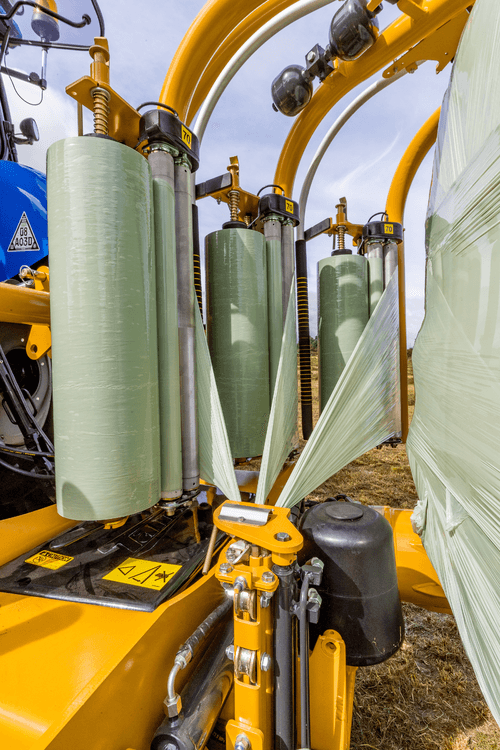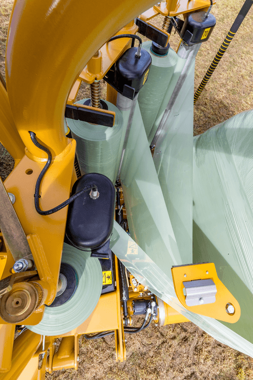 Dès que la balle est enrubannée, le système de coupe film télescopique « Cut & Start » robuste et ne nécessitant aucun réglage, coupe le film.