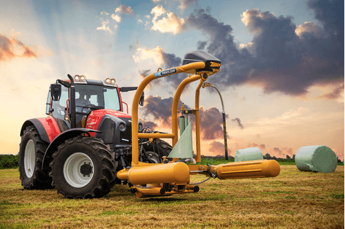Enrubanneuse portée à 3 points pour balles rondes jusqu’à 1,7 m de diamètre et balles carrées jusqu’à...