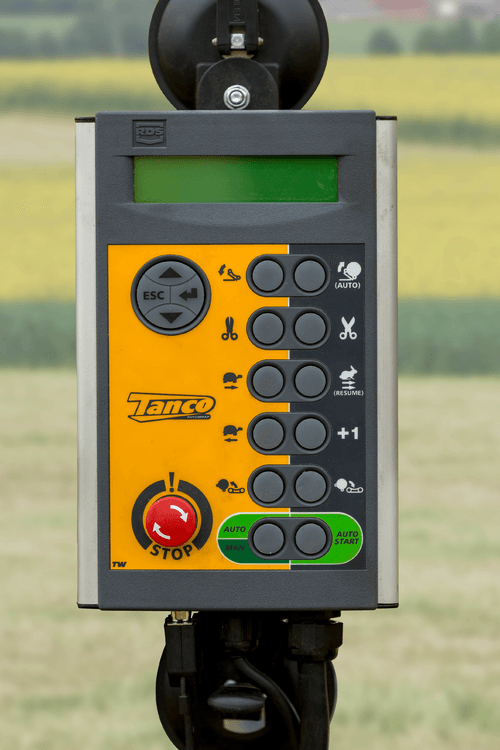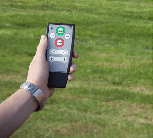 Télécommande radio fournie de série permettant de faire fonctionner l’enrubanneuse à distance.