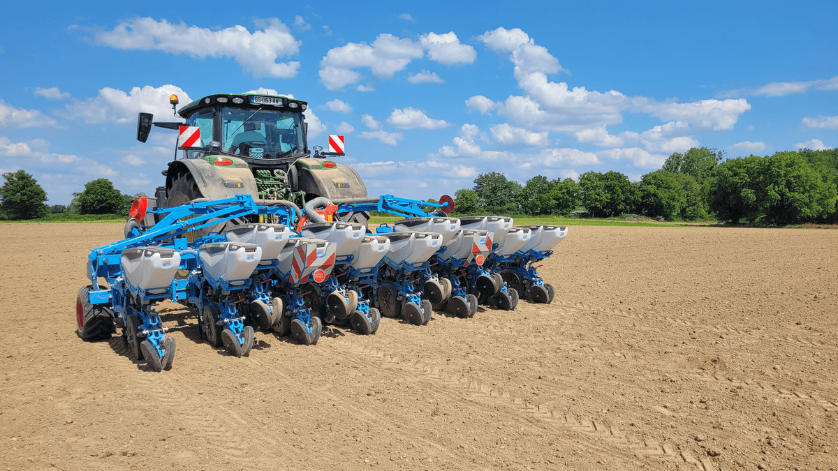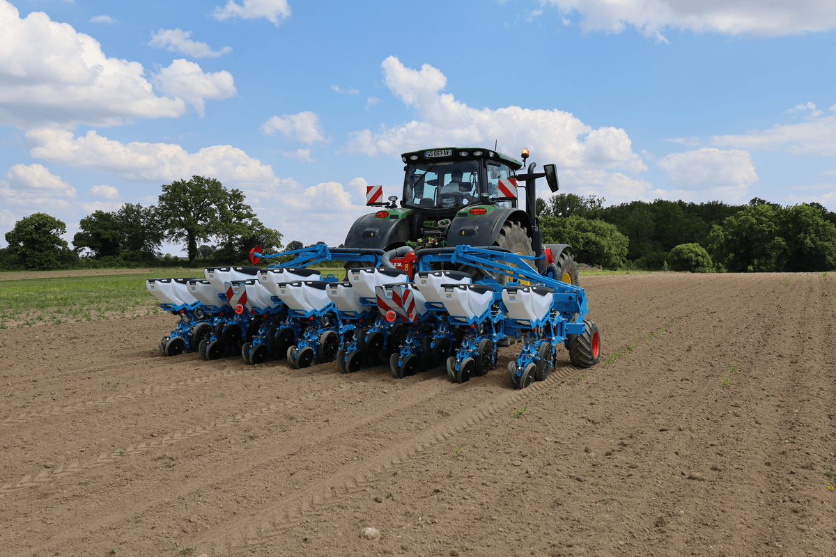 Semoir monograines pneumatique à enterrage à disques.