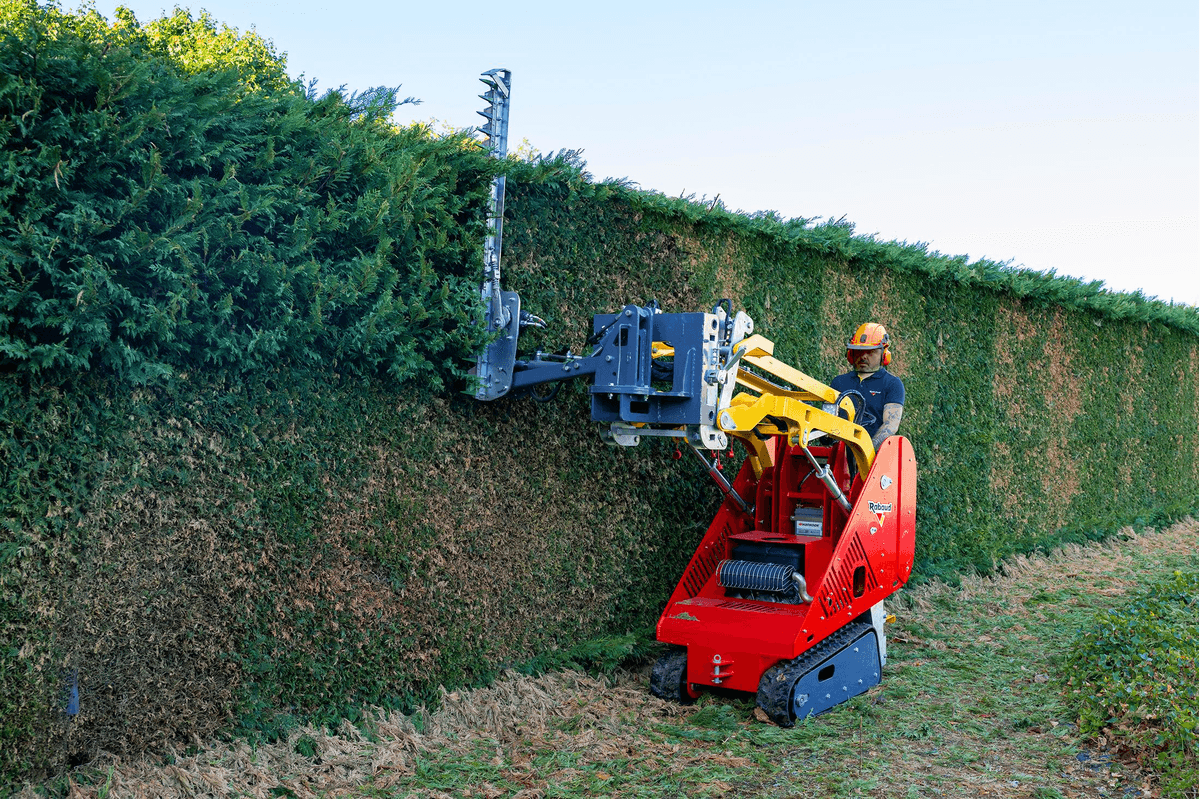 Porte outils ultra compact sur chenilles pour tous types de terrains qui assemble puissance, maniabilité et polyvalence. Pour les besoins des espaces verts, BTP etc… Bras hydraulique multifonction avec levage jusqu’à 2,10 m et capacité de 890 kg avec un vérin de cavage sur l’attache pour plus de précision et de polyvalence et qui peut recevoir une large gamme d’accessoires pareils qu’un lamier pour la taille, un godet, un enfonce pieux, une fourche à palette, une balayeuse, broyeur etc…