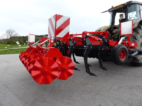 2 - Le déchaumeur à dents porté CHISEL NSL avec châssis bipoutre ou tripoutre 100 x 100 mm avec 2 ou 3 rangées de dents non-stop à lames avec pointe type charrue réversible, dégagement sous châssis 830 mm.