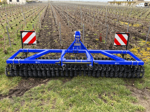 Gamme complète de Croskillettes de 2,50 à 6.20m de largeur de travail. Châssis tubulaire, barre d’attelage 3 points, arbres en acier Ø 45mm équipés de paliers avec roulements à billes, éclairage et signalisation. Au choix disques Ø 290, 320, et 360mm sur 2 rangées.