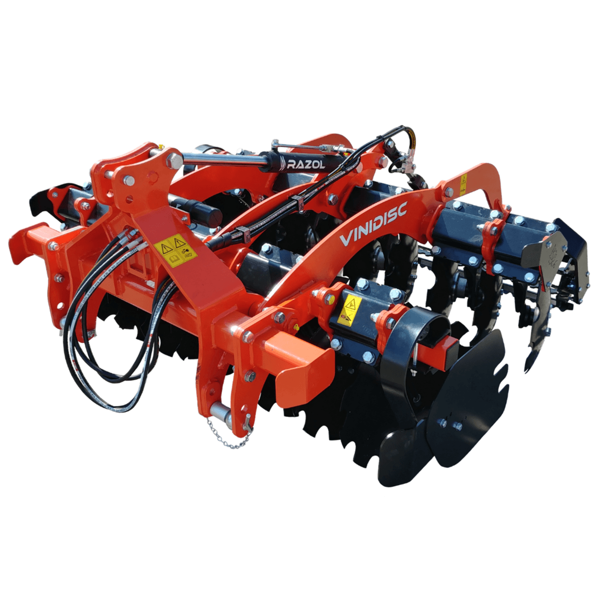 Le VINIDISC est un déchaumeur à disques indépendants porté pour les inter-rangs entre 1,5 m et 3 m dans les vignes et vergers. Equipé d’un attelage catégorie 1 et 2 avec un châssis poutre acier de 80 x 80 x 8 mm, il permet en travaillant en profondeur de gérer les résidus avec ces disques crénelés et un système de sécurité non-stop avec 4 amortisseurs. Largeur de travail de 1,15 m à 1,6 m. Choix d’équipements et accessoires en option pour chaque utilisation.