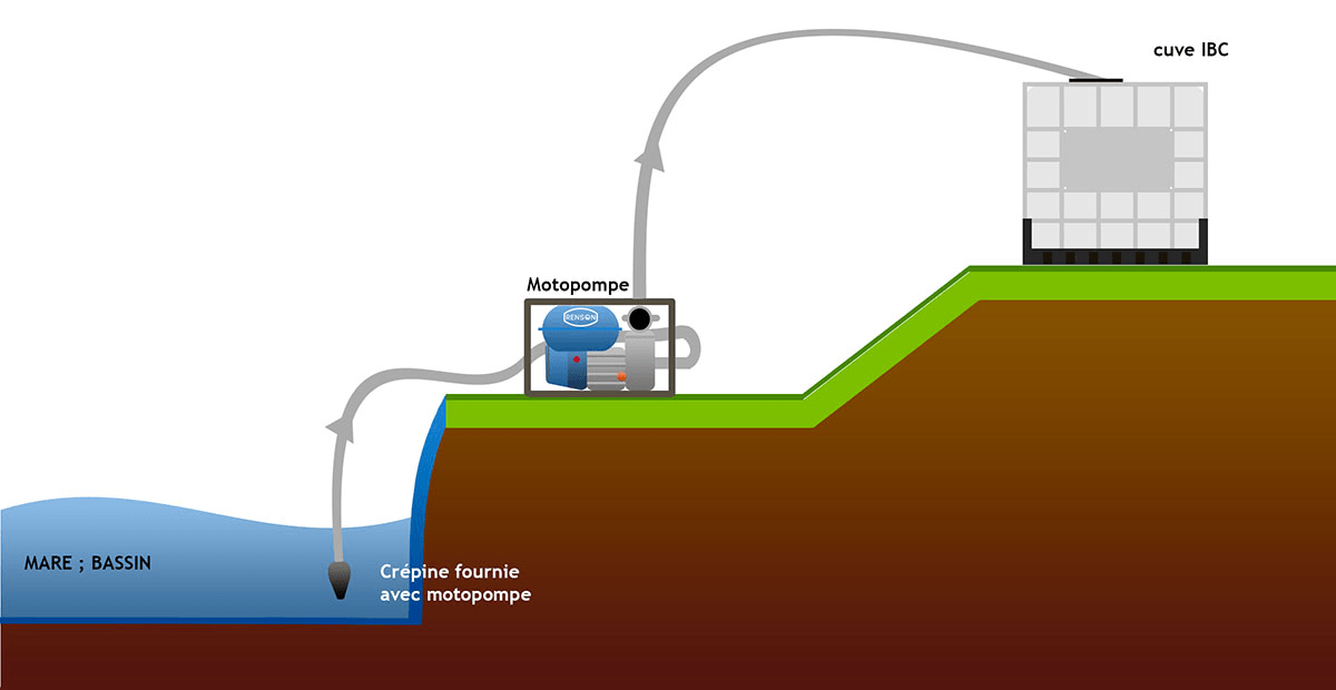 Pour irrigation, ou transfert de l'eau sans alimentation électrique