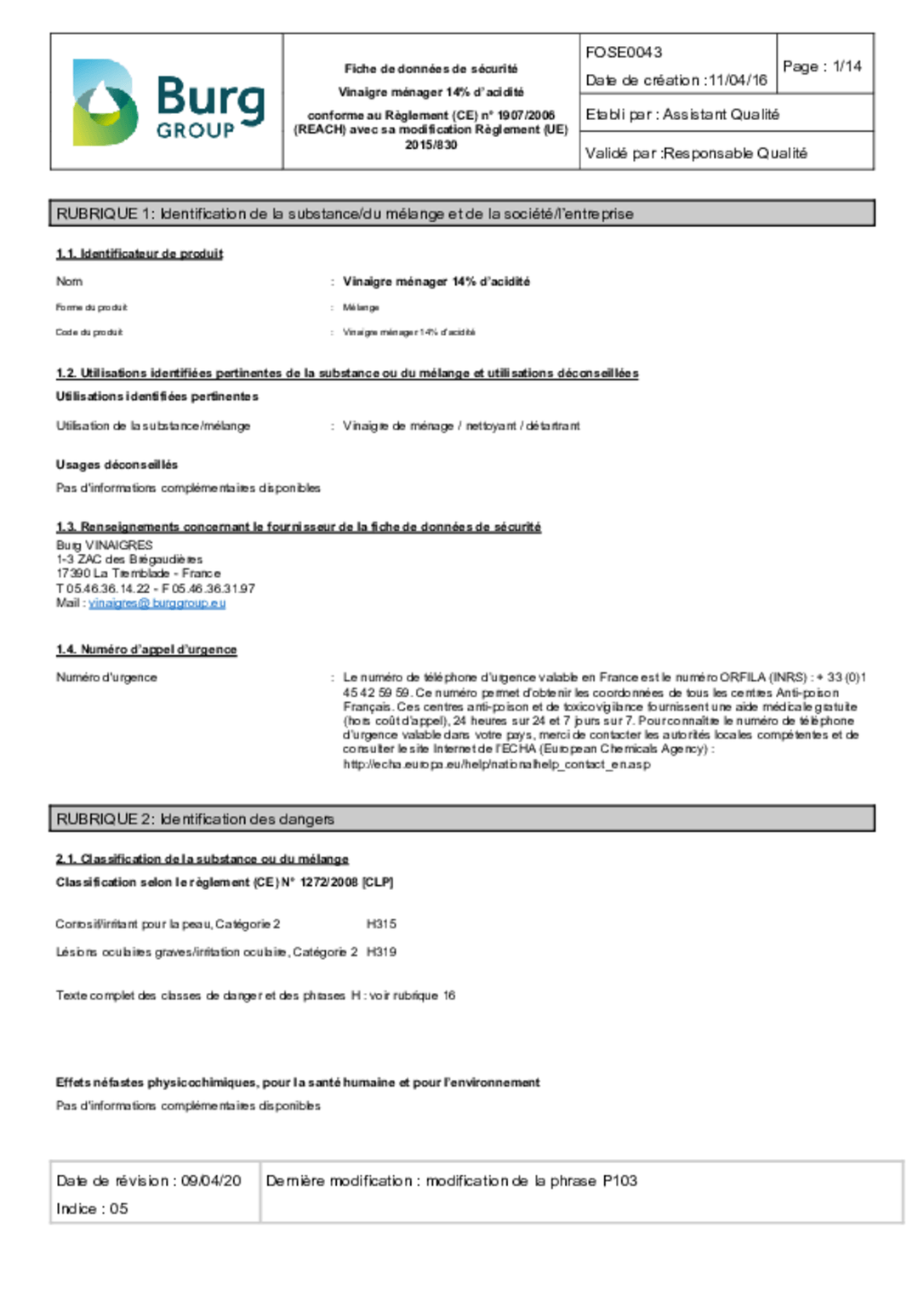 Vinaigre menager 14°