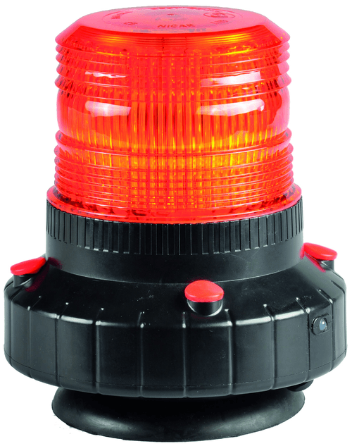 4 fonctions : 5 flash, flash double, rotatif, lumière fixe. 12/24 V. Batterie rechargeable 1 800 mA/7,4 V 18 650 Li-ion. Avec embase magnétique et/ou à fixer. Non homologué.