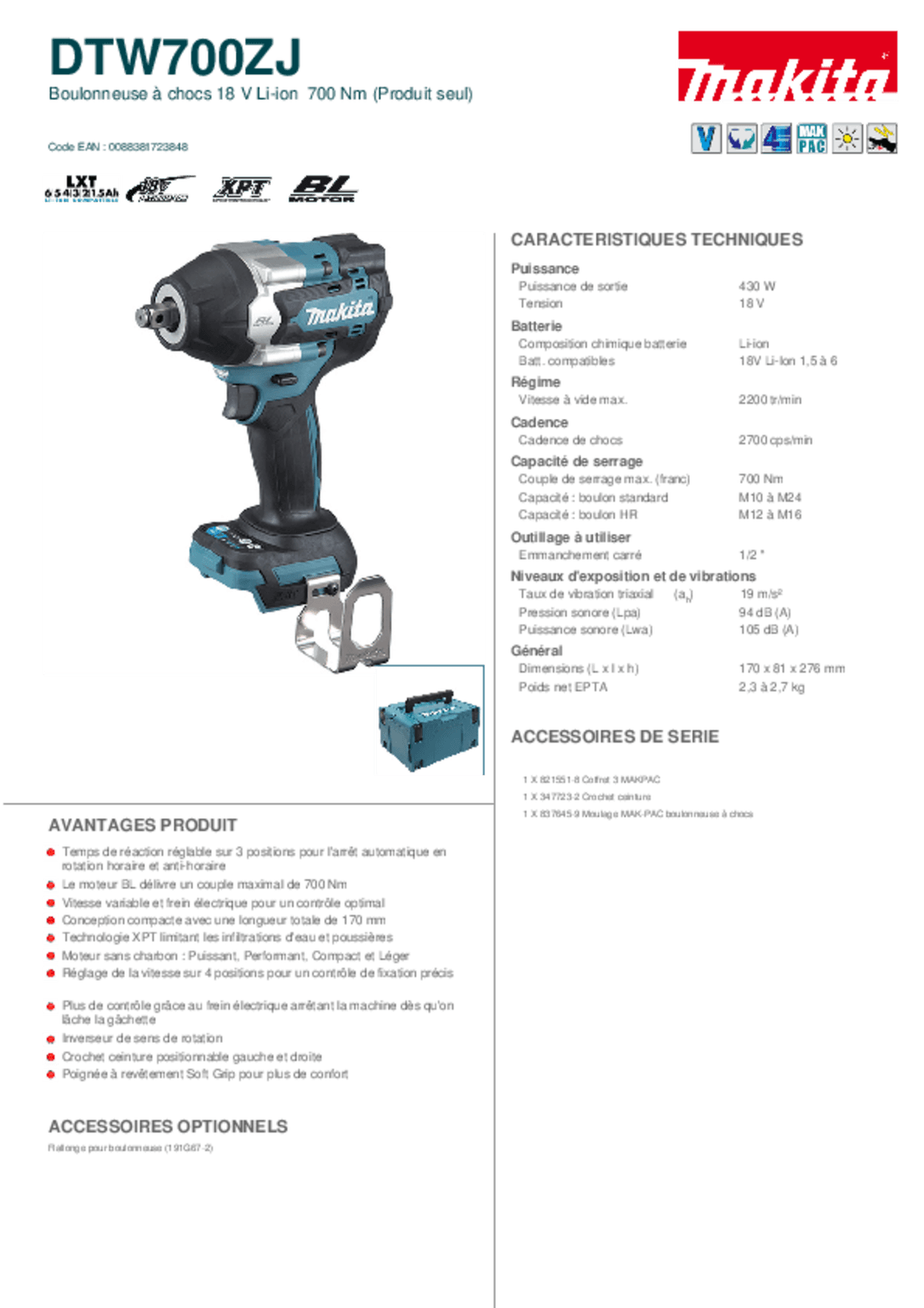 Livrée sans batterie.