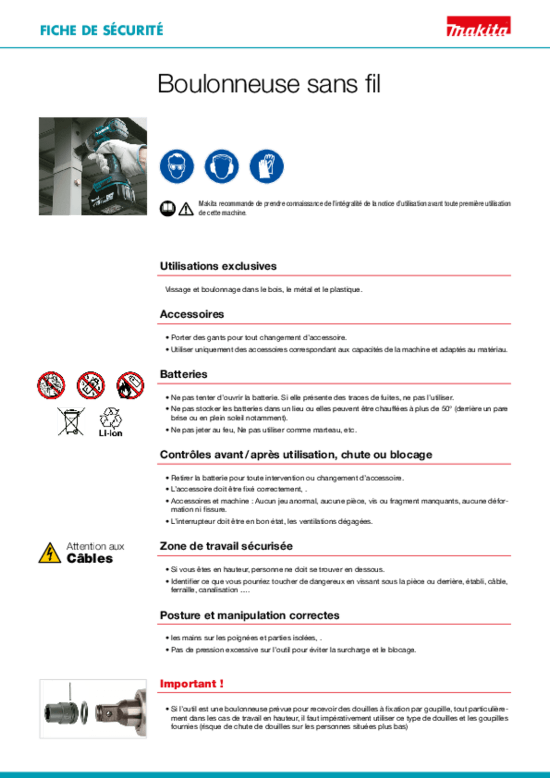 Capacité : boulon standard : M10 à M24, boulon HR : M12 à M16.