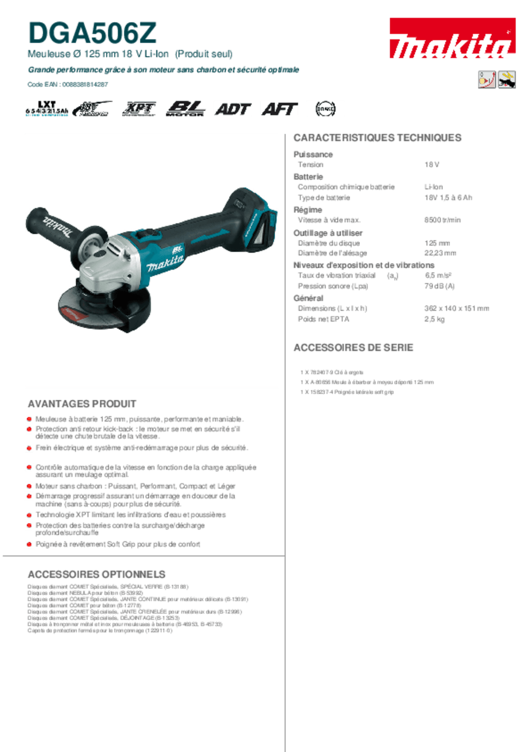 - Meuleuse sans fil 18V DGA506Z