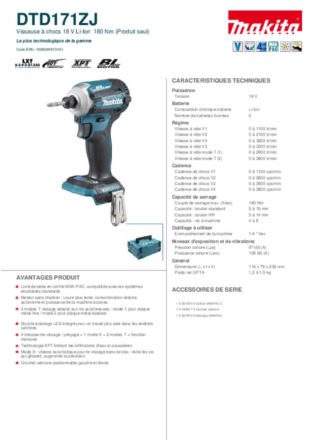 - Visseuse à chocs 18V 180 NM DTD171ZJ