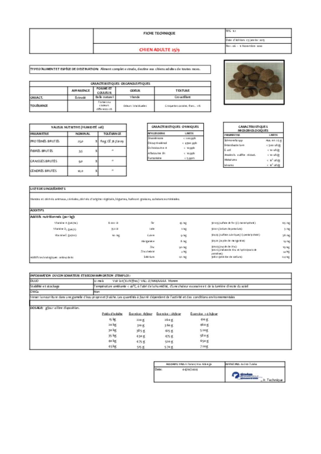 Composition : viande et dérivés animaux (boeuf minimum 15%), céréales, dérivés d´origine végétale, légumes, huiles et graisses, substances minérales.