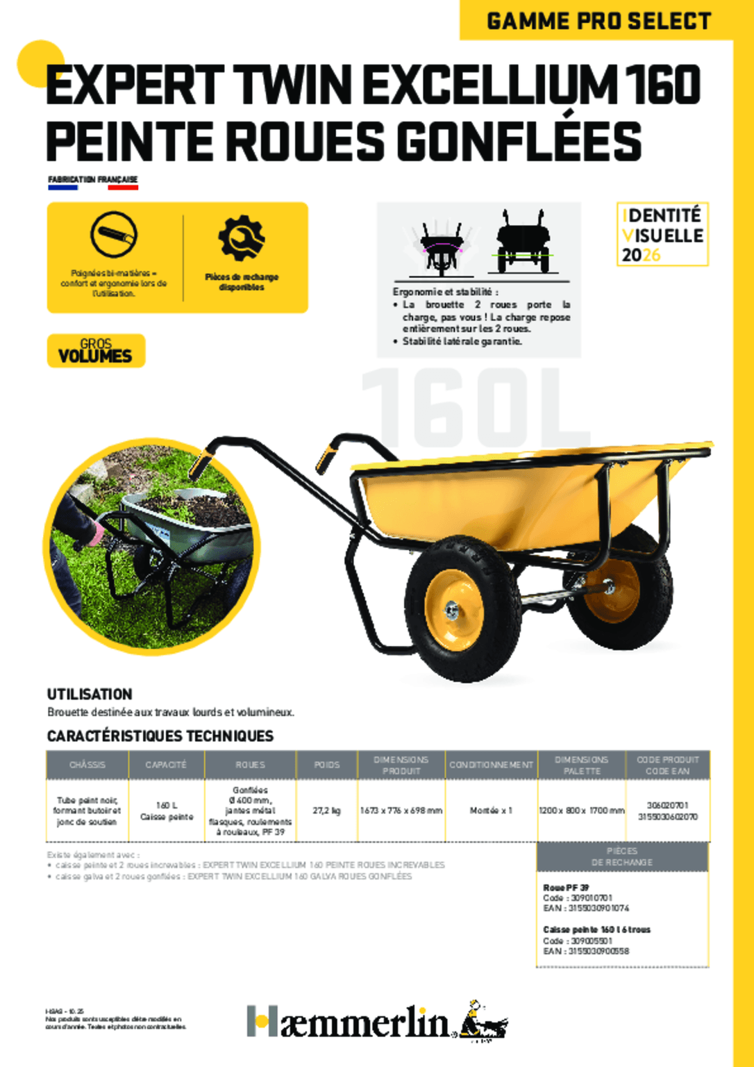 - Brouette EXPERT TWIN EXCELLIUM 160 L