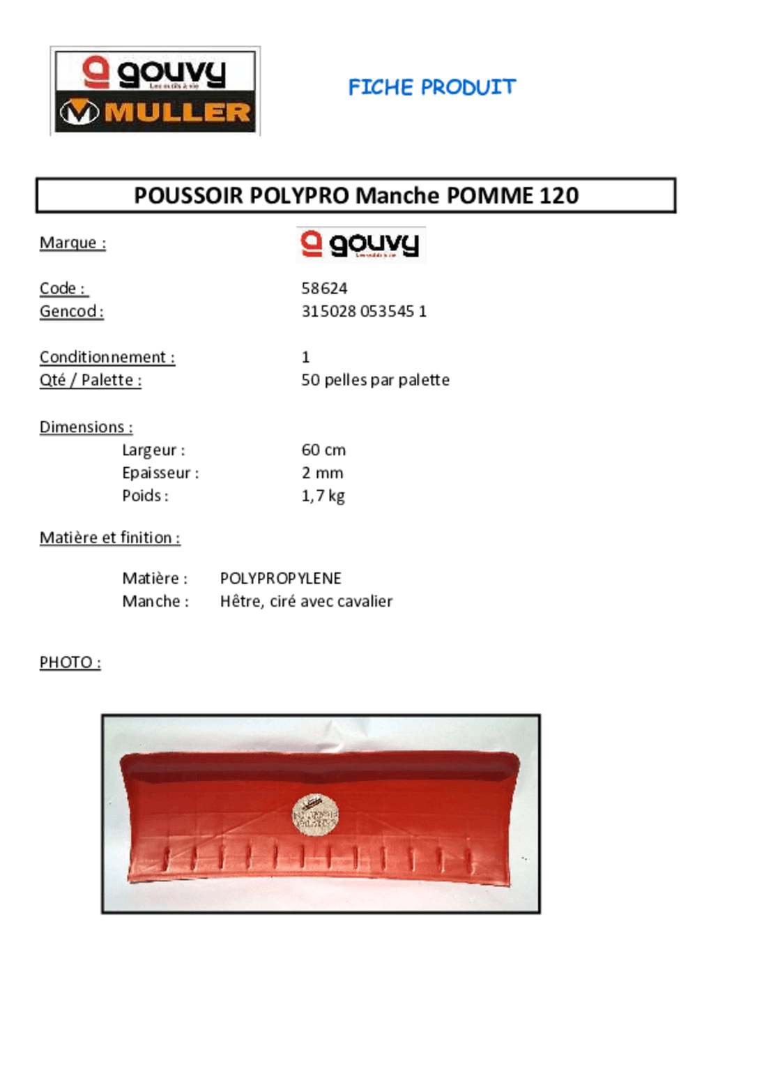 Epaisseur : 2,5 mm. Manche droit. Longueur : 1,62 m, largeur 31 cm.