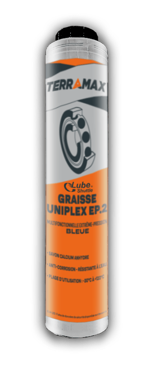 Graisse Uniplex EP2 extrême-pression. Bleue. Grade NLGI : 2. Savon : calcium. Cartouche 400 g.Ancienne...
