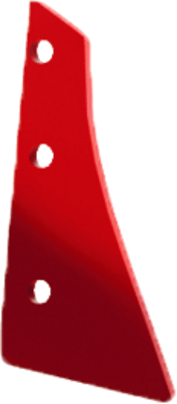 Pièce amovible protégeant l'avant du versoir. Longueur : 330 mm. Largeur : 165 mm. Epaisseur : 8 mm. Entre-axe : 145-95 mm. Pour corps de charrue n°6, 9, 28, 30. Gauche.